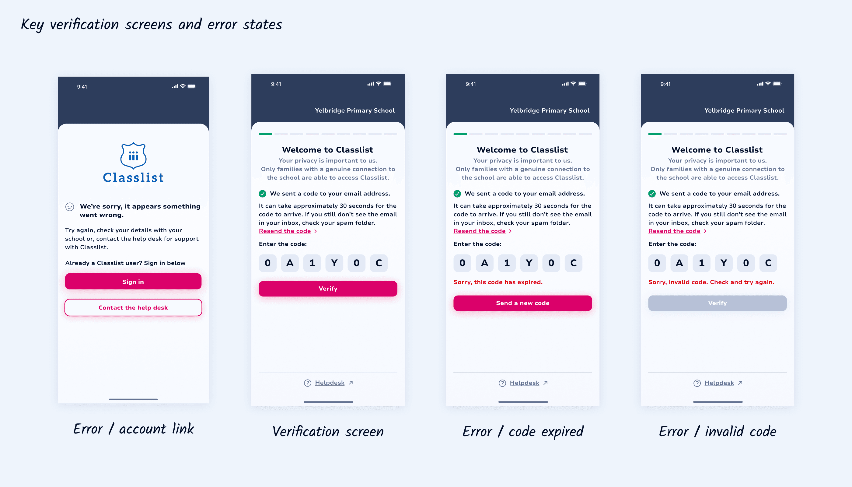 Because verification happens before parents access any MIS-linked data, it was critical to ensure parents could recover quickly from issues without getting stuck or confused.